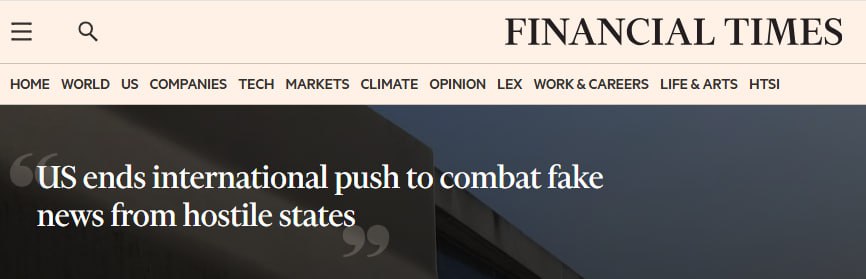 Зазначається, що минулого тижня європейські країни отримали повідомлення від Державного департаменту про те, що США розривають меморандуми про взаєморозуміння, підписані минулого року при адміністрації Джо Байдена. Ці меморандуми мали на меті створити єдиний підхід до виявлення та викриття шкідливої інформації, що розповсюджується іноземними урядами з метою посіяти хаос.