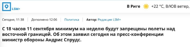 Разом із Польщею Латвія мінімум на тиждень теж заборонила польоти над своїм східним кордоном із Білоруссю та Росією.