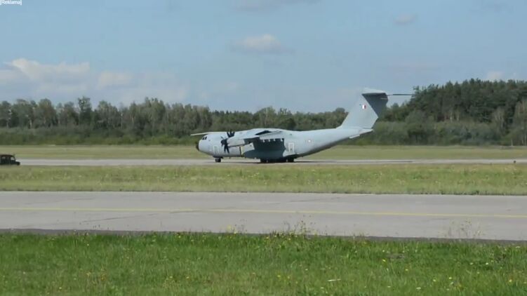 Громадськості були надані кадри посадки французького транспортного літака А400 у Мінську-Мазовецькому.
