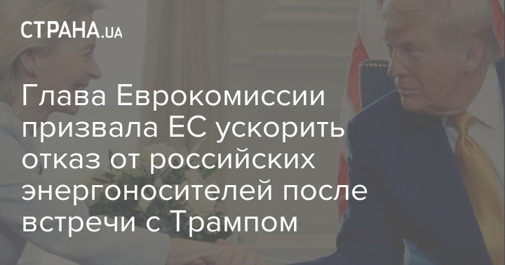 Глава Єврокомісії Урсула фон дер Ляйєн після переговорів із президентом США Дональдом Трампом пропонує країнам-членам Євросоюзу прискорити відмову від російських нафти та газу.