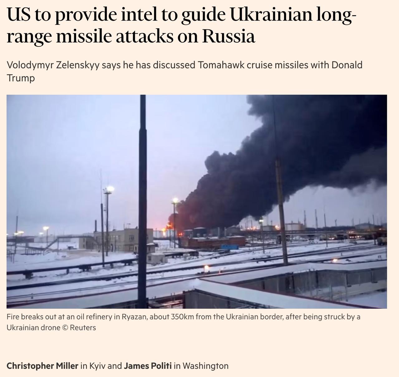 Газета підтверджує інформацію інших ЗМІ про те, що Трамп уже доручив американським військовим підготуватися до надання Україні додаткових розвідданих для далекобійних ударів по російській енергетиці, хоча остаточне рішення ще не оприлюднене.