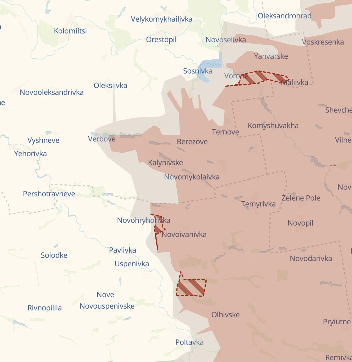 За даними Deep State, вони захопили село Маліївка (у РФ давно заявляли, що воно захоплене), просунулися у Вороному, Новгригорівці та Мисливському.