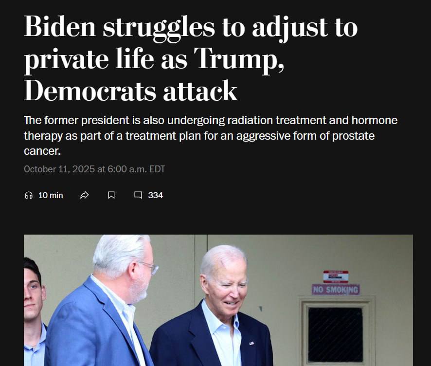"Дослідники стверджують, що постпрезидентський досвід Байдена безпрецедентний не тільки через нападки Трампа, а й через багатьох демократів, які звинувачують його в нищівній поразці на виборах. Книги, які докладно описують, як помічники Байдена намагалися приховати його слабкість, лише посилили картину занепаду, яка затьмарила його життя після відходу з Білого дому", - пише видання.