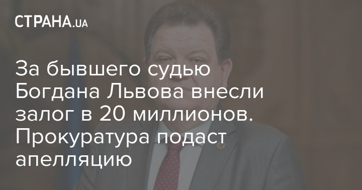 За колишнього заступника голови Верховного суду та екс-суддю Касаційного господарського суду Богдана Львова внесли 20 мільйонів гривень застави.