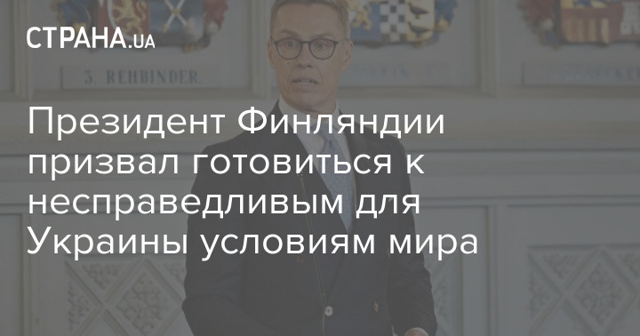 Президент Фінляндії Олександр Стубб заявив, що потрібно готуватись до несправедливих для України умов світу.