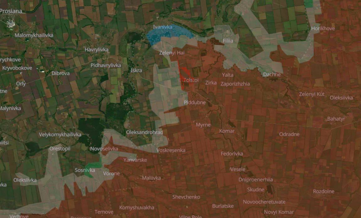 За даними паблика, російські війська захопили село Толстой на Донеччині поблизу кордону з Дніпропетровською.