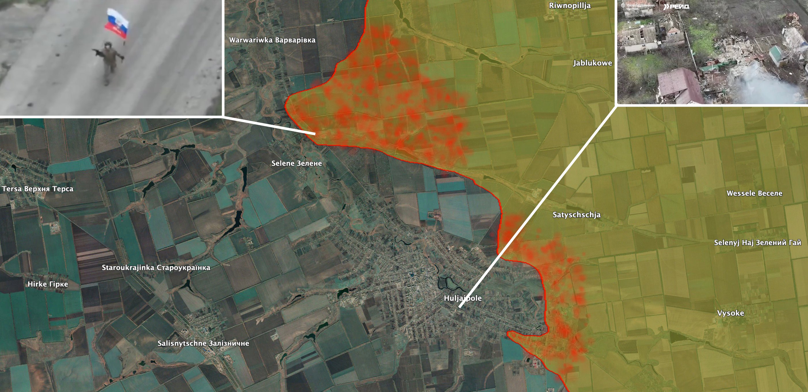 Російські десантники увійшли до Гуляйполя з південного сходу, деяким військам вдалося дістатися центру міста, пише військовий оглядач Bild Юліан Репке. Також росіяни захопили південну частину села Варварівка, розташовану за три кілометри на північ від Гуляйполя.