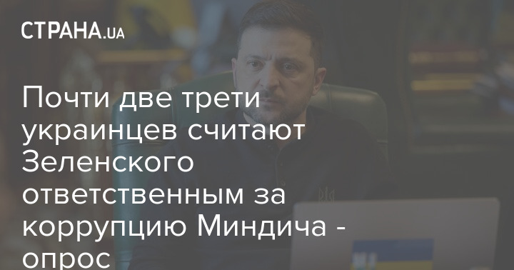 Майже дві третини українців вважають Зеленського відповідальним за корупцію Міндіча – опитування