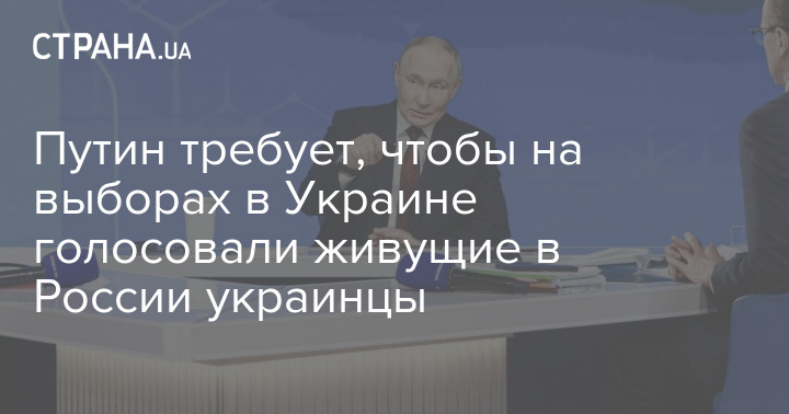 Президент РФ Володимир Путін вимагає, щоб на наступних виборах в Україні змогли проголосувати ті 10 мільйонів українців, які зараз проживають у Росії.