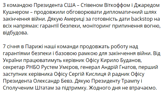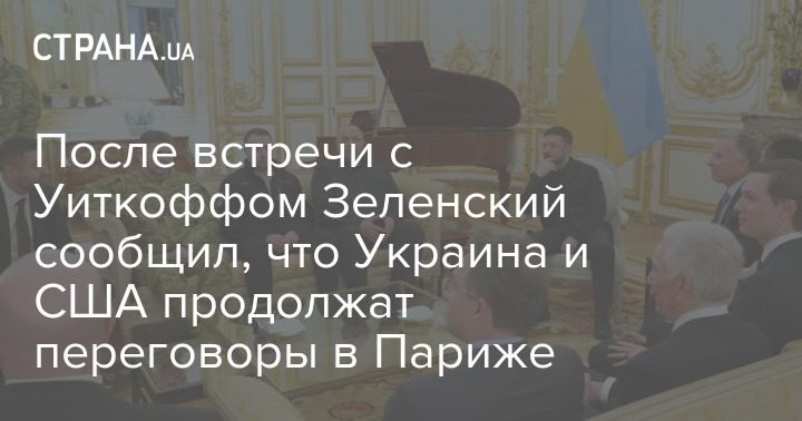 Після зустрічі з Віткоффом Зеленський повідомив, що Україна та США продовжать переговори у Парижі