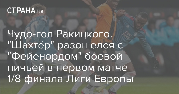 Чудо-гол Ракицького. "Шахтар" розійшовся з "Фейєнордом" бойовою нічиєю у першому матчі 1/8 фіналу Ліги Європи