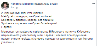Пресс-секретарь киевского метрополитена Натальи Макогон  сообщила, что  руководству вуза уже сообщили о массовом нарушении правил оплаты проезда, льготного прохода и пользования турникетами в подземке.