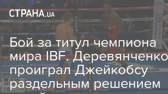 31-летний Джейкобс одолел 32-летнего Деревянченко, завоевав вакантный титул чемпиона мира по версии IBF в среднем весе (до 72,6 кг). Американец одержал победу по очкам. Двое из трех судей отдали победу Джейкобсу -  115-112, 115-112, 113-114.
