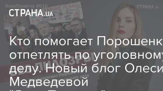 Кто прикрывает Порошенко от уголовного преследования и какова в этом позиция Банковой - разбиралась автор блога "Ясно.Понятно", журналистка "Страны" Олеся Медведева.