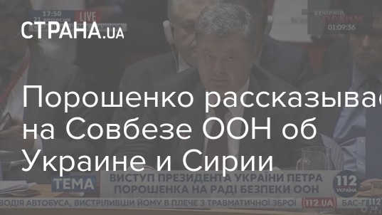 Президент Украины Петр Порошенко выступает на Совете безопасности ООН. Он заявил, что Совет безопасности ООН продемонстрировал свою неэффективность в разрешении конфликта в Сирии, а также в реагировании на агрессию России против Украины и нуждается в реформировании.