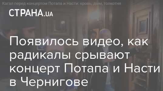Вчера, 9 ноября, общественные активисты Чернигова пытались сорвать концерт "Потапа и Насти" в своем городе. Кроме дымовых шашек они использовали свиную кровь, которую разлили перед входом в зал, а также выкрикивали протестные речевки.