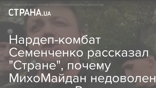 Народный депутат и комбат "Донбасса" Семен Семенченко заявил "Стране", что МихоМайдан не устраивают законы по снятию неприкосновенности, поданные в Конституционный суд. Они даже не приняты в первом чтении. А если и примут, то снятие иммунитета нардепов Рады этого созыва не коснется - оно произойдет с 2020 года.